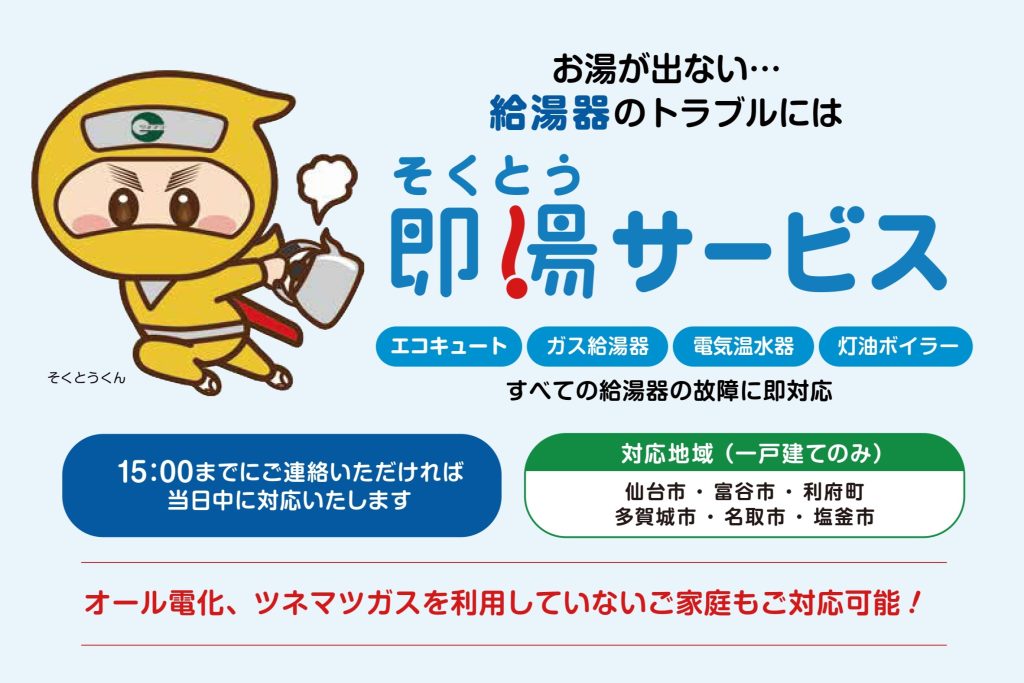 お湯が出ないときに便利!「即湯(そくとう)サービス」を開始しました!